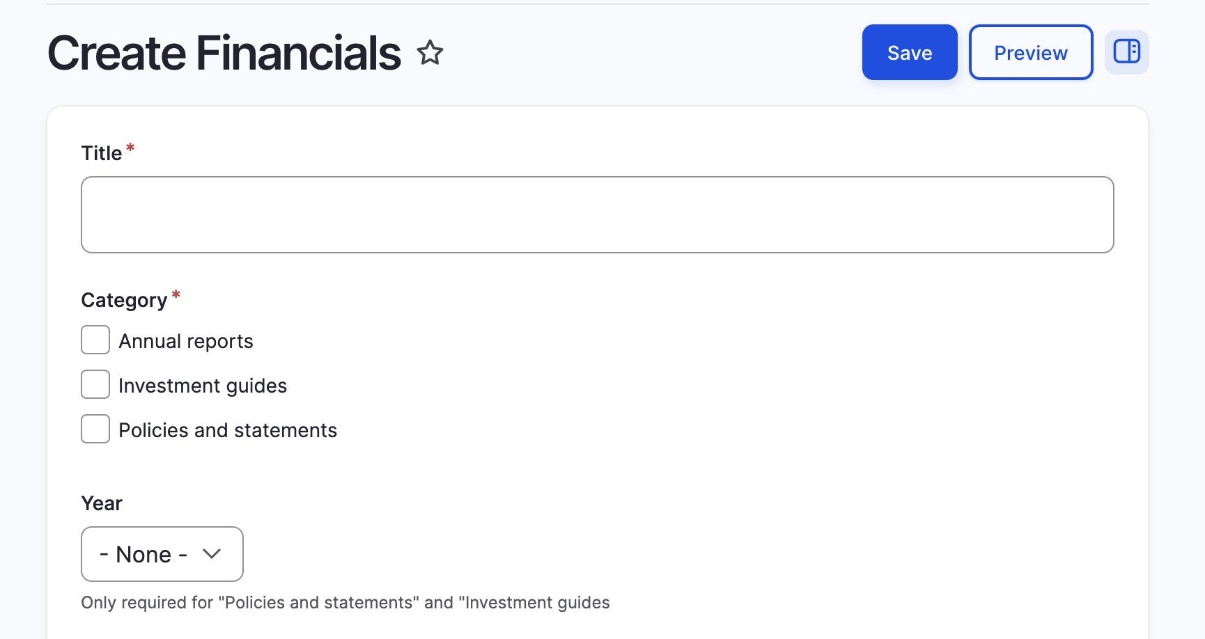 Select "Financials Upload financials documents".
