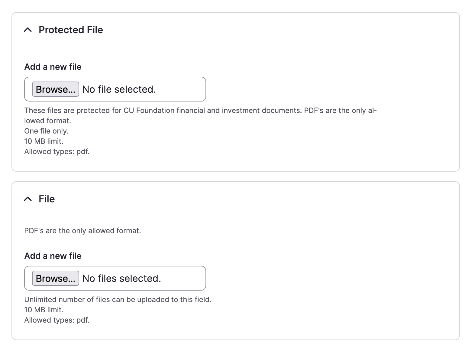 Fill out the form with the required fields and options. You can also choose to protect the file so that it is only accessible to logged‑in users, or leave it available to everyone.