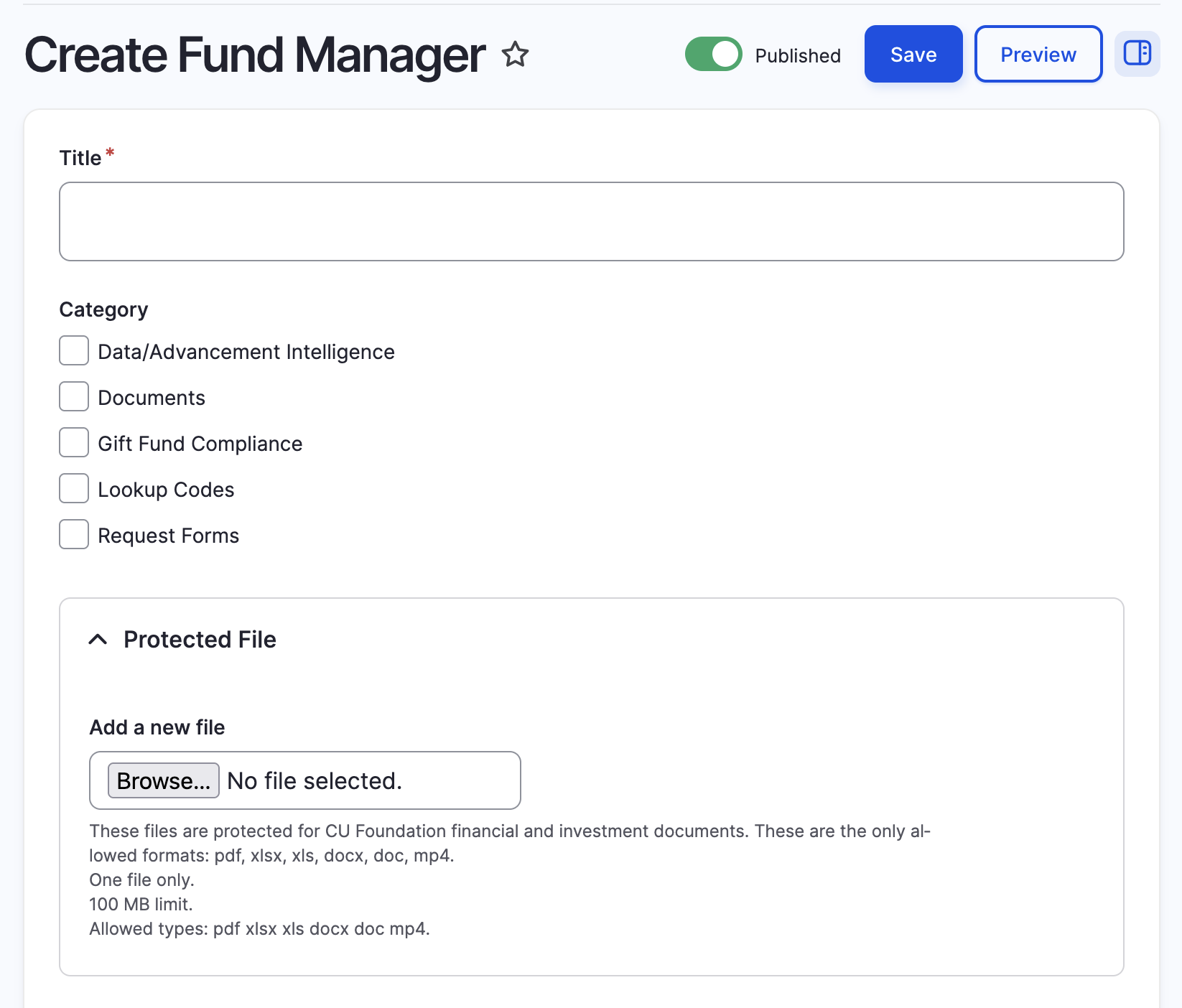 Upload the document using the desired access (protected is for those with "Fund Manager" permissions).