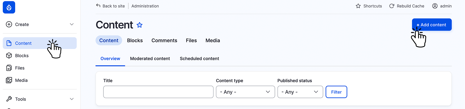 Select "Content" on the left top menu.
